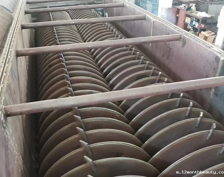 污泥干化机装置紧凑,由于每单位体积的传热面积大。污泥与传热面的楔形刀片接触是通过咬入粉末的效果促进,可以得到大的传热系数。此外,由于85%至90%的高填充率可以用来增大热传导面积。通过重叠两个轴的楔形翼板的相互移动防止粘附,然后压制。